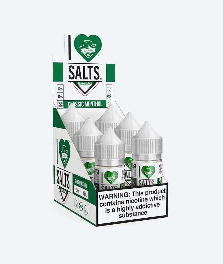 I Love Salts Classic Menthol Salt Likit ithal yüksek kalitede bu harika ürün Pod Turkey stoklarında mevcuttur. Ferahlatıcı bir Mentol tadı sevenler için özel olarak üretilen bu harika ürün Mad Hatter Juice markası ile Amerika’da üretilmiştir. Serin ve Taze bir lezzet olup, tekrar tekrar kullanmak isteyeceğiniz aroma çeşitleri arasında yerini almaktadır.