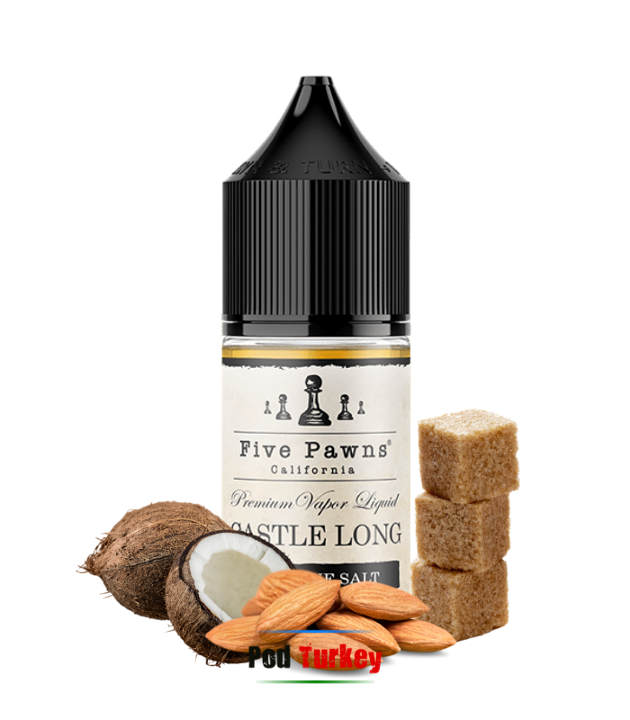 Karşınızda Five Pawns Castle Long Salt Likit 30 Ml. Podturkey3 sitemizden havale veya kapıda ödeme ile sipariş verebilirsiniz. 30 ML şişeye koyulmuş Hindistan Cevizi , Esmer Şeker ve Badem aromalarına bayılacaksınız.