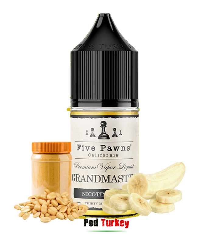 Karşınızda Five Pawns Grandmaster Salt Likit 30 ml. Podturkey sitemizden bu efsanevi ürünü havale veya kapıda ödeme sipariş ver. Ürün aroması olarak Muz ve Yer Fıstığı karışımı bence inanılmaz bir ikilidir.