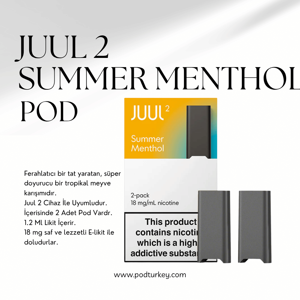 JUUL 2 Summer Menthol Pod 2‘li Kartuş şimdi Pod Turkey stoklarımızda yer almakta olup, hızlı teslimat ve kapıda ödeme imkanı ile hemen sipariş verebilirsiniz. Tropical meyve aromaları ile serin menthol karışımının sentezlenmesi ile ortaya çıkan bu eşsiz aroma tadına hayran kalacaksınız.