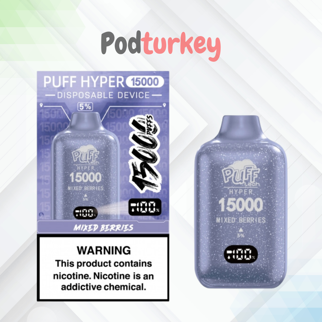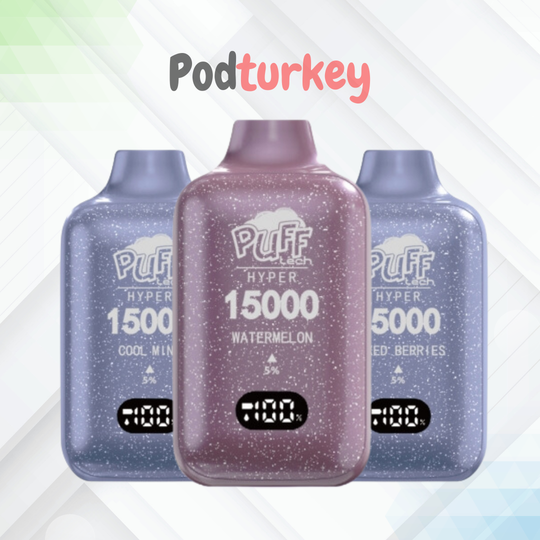 Karşınızda Puff Tech markasının son çıkan modeli Puff Tech Hyper 15000 Puff. Podturkey sizler için bu ürünü araştırdı ve satışa sundu. Puff markası piyasanın eski markalarından olmakla beraber en kaliteli markalar arasında yer almaktadır. 15000 çekim hakkı bulunan bu ürüne şu anda gündem olan dijital göstergeyide eklemeyi unutmamışlar tabikide. 550 mah doldurulabilir bataryası ile uzun süreli bir kullanıma sahiptir. 22 ml likit kapasitesinin içerisinde benzersiz aromalar saklamaktadır.