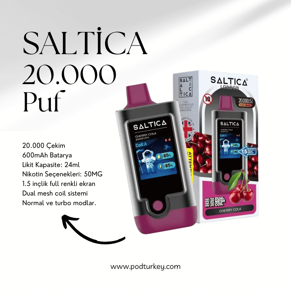 Saltica 20000 Digital Puff yeni ürün Podturkey stoklarında yer almaktadır , kapıda ödeme imkanı ve hızlı teslimat imkanı ile hemen sipariş ver.